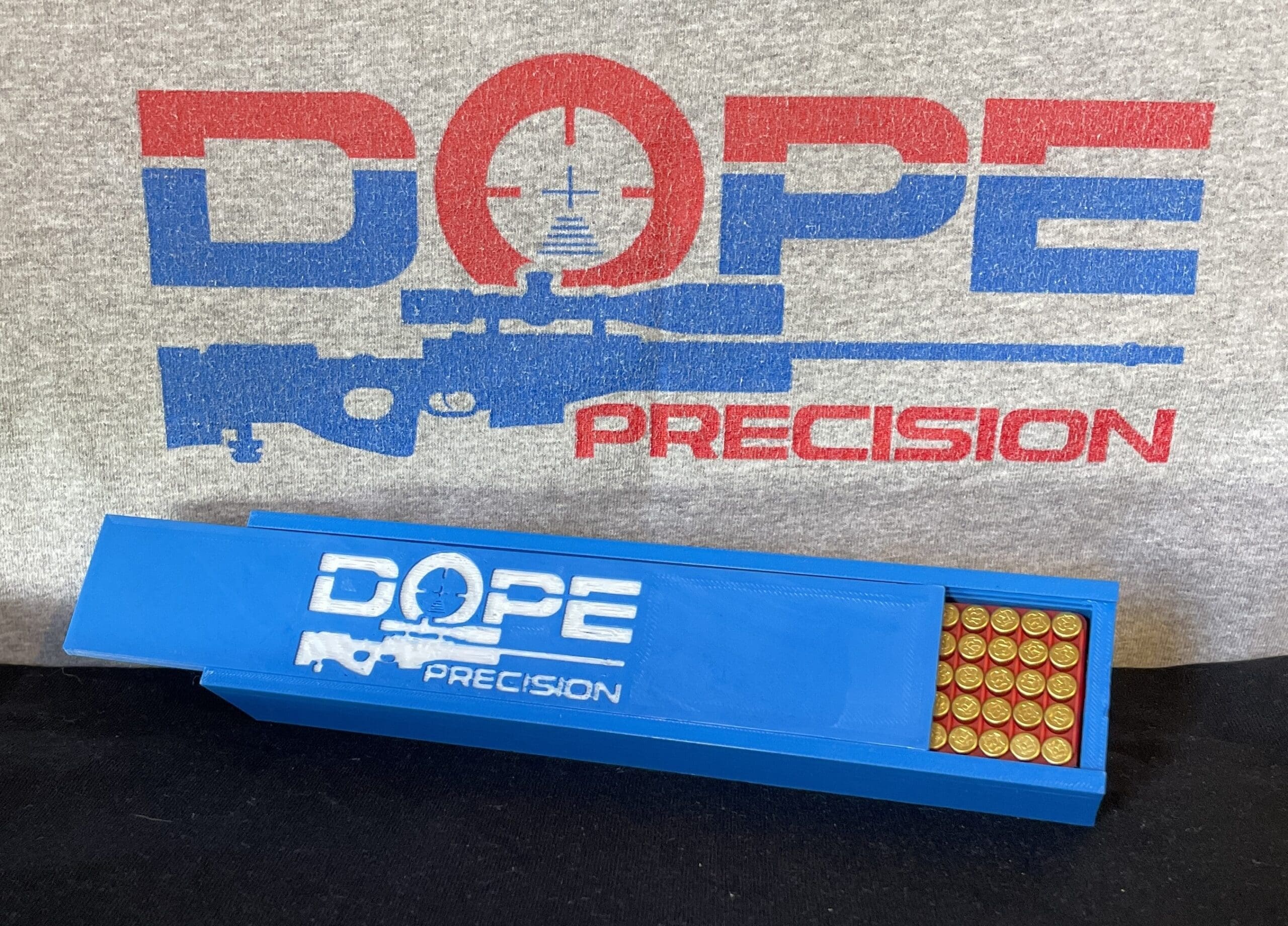 The 22LR Match box is a heavy-duty storage box for your 22LR ammunition designed to hold enough rounds for a one-day match plus sighters. This ammo box was specifically designed for days in the field as a way to keep your ammo dry and out of the weather, especially when you are loading and unloading ammo out of a single cardboard case. We have noticed by using this, it keeps the sunshine and heat off of our ammunition which in turn gives us more consistent SD’s. Not to mention, if you are caught in the rain or damp conditions, it keeps you from having a soggy box and no one wants a soggy box.