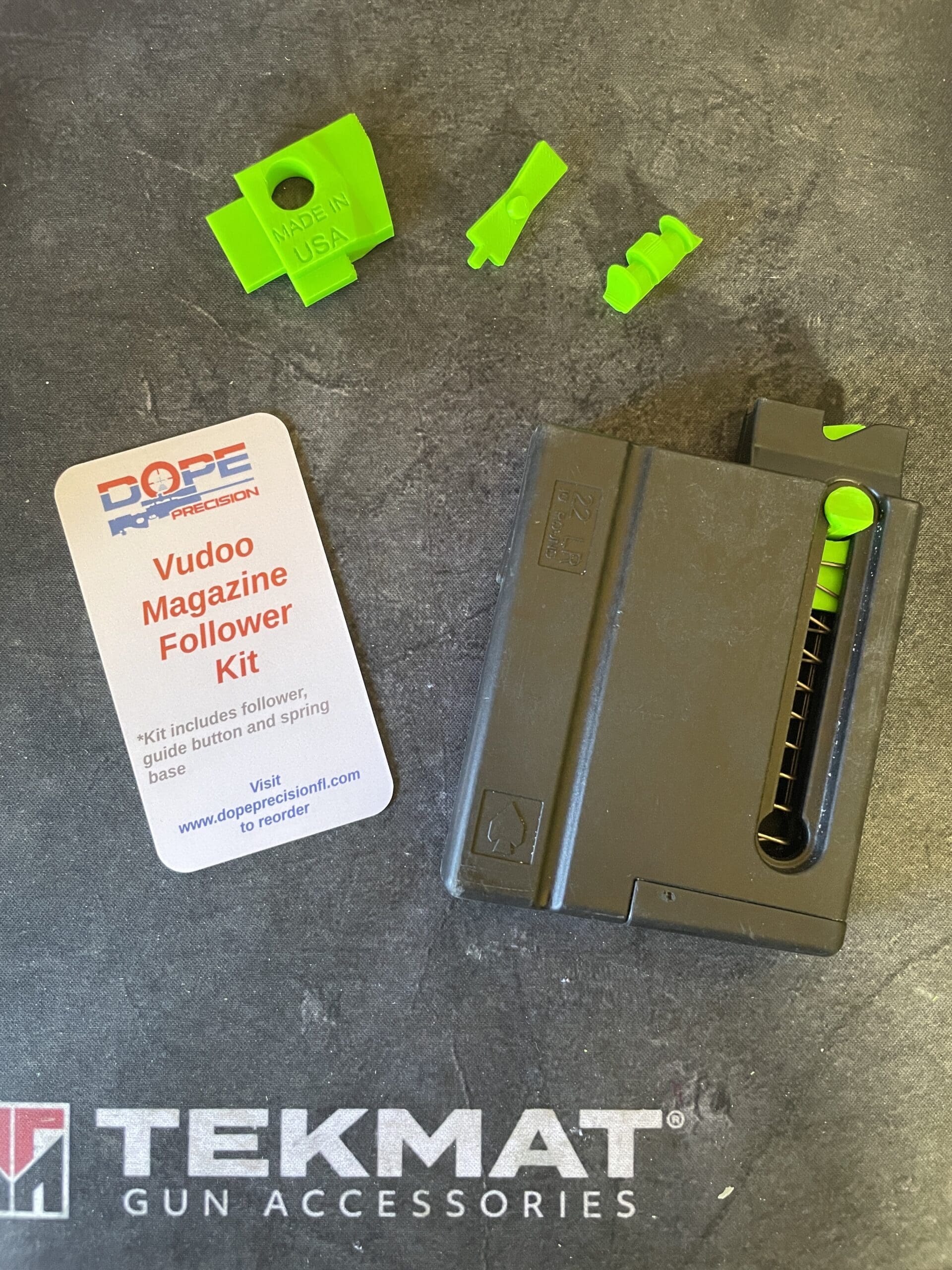“The Follower Kit” is a direct replacement kit for factory, plastic and metal magazines for your Vudoo 22. The kit includes one replacement follower, guide button and spring base. Simply disassemble your existing magazine and replace the three plastic parts with your new Follower Kit. We created “The Follower Kit” after having continuous issues while shooting both on and off the clock. After several versions and thousands of rounds shot down range, we feel that this is the best solution for feeding issues. We built these in order to help other shooters out that have had the same feeding issues.
